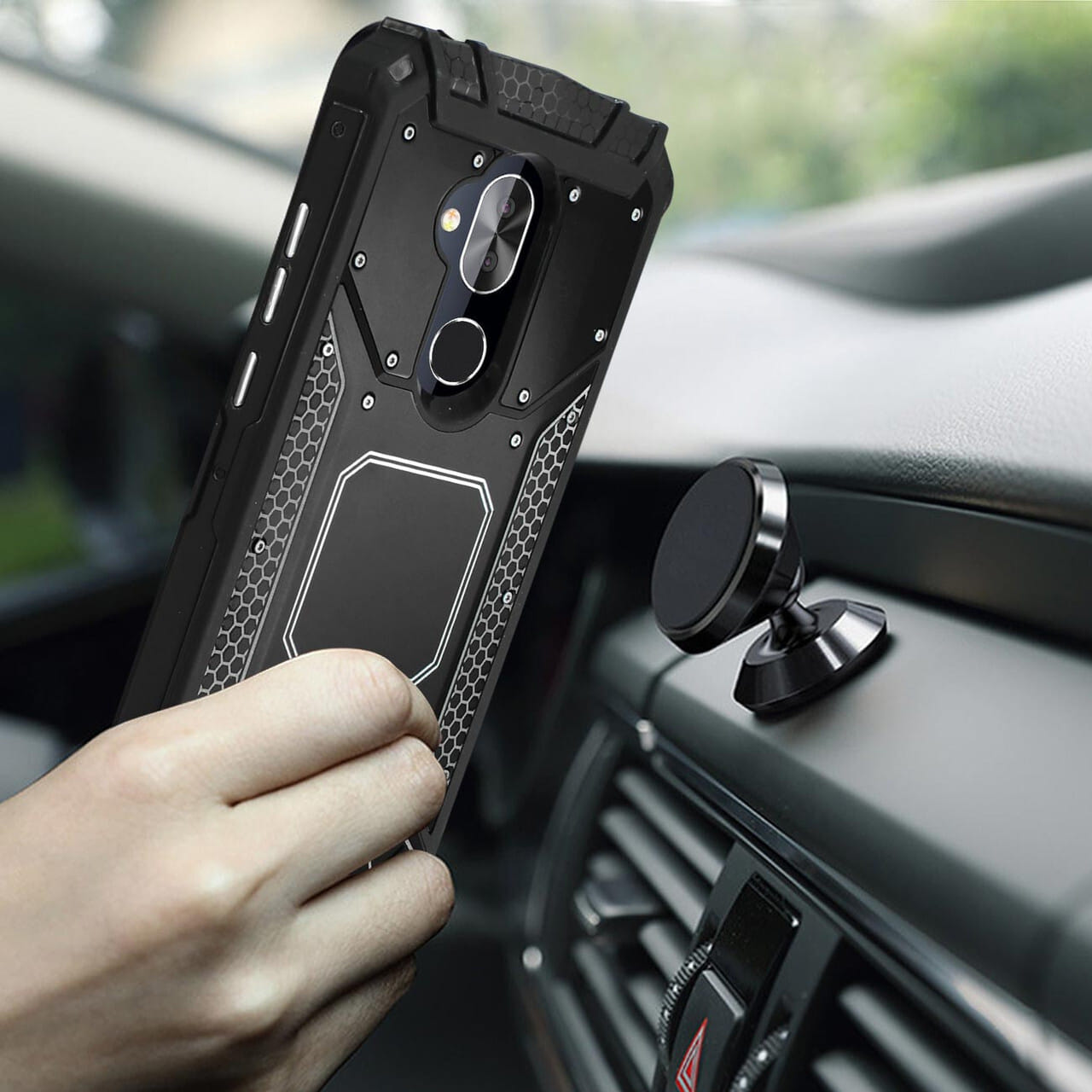 - – Exclusive invisible built-in magnetic metal plate designed phone protector. easy to connect and remove the phone from the magnetic car mount & holder by one hand when driving.