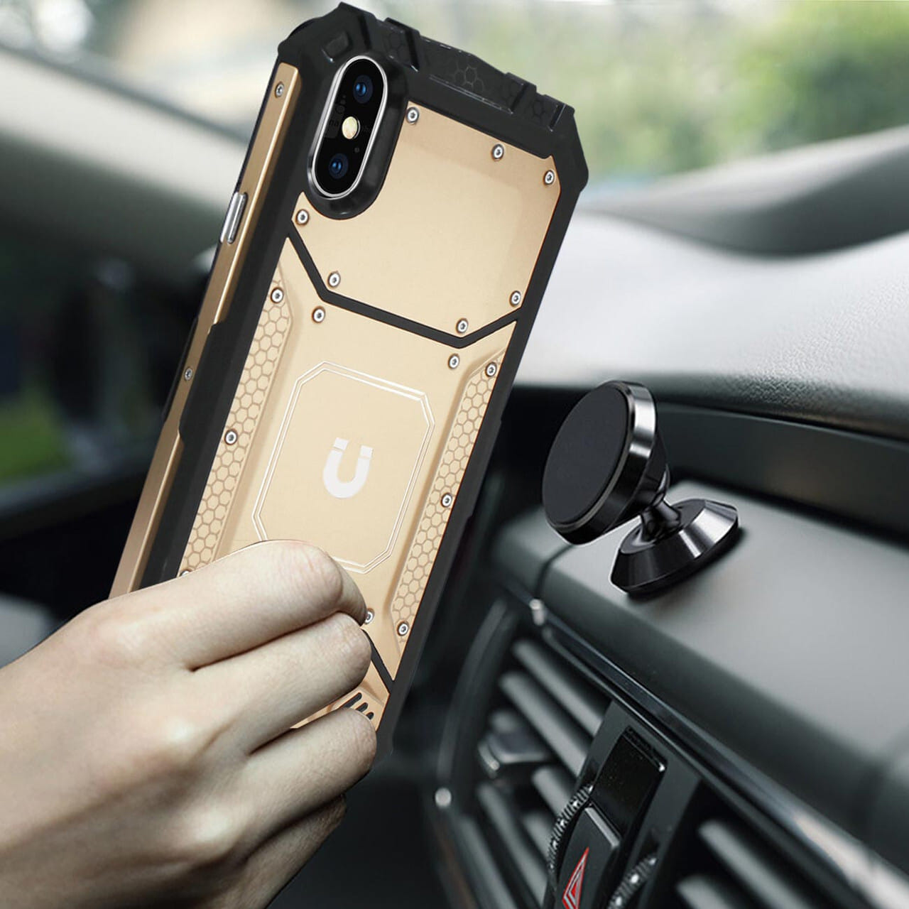 - – Exclusive invisible built-in magnetic metal plate designed phone protector. easy to connect and remove the phone from the magnetic car mount & holder by one hand when driving.