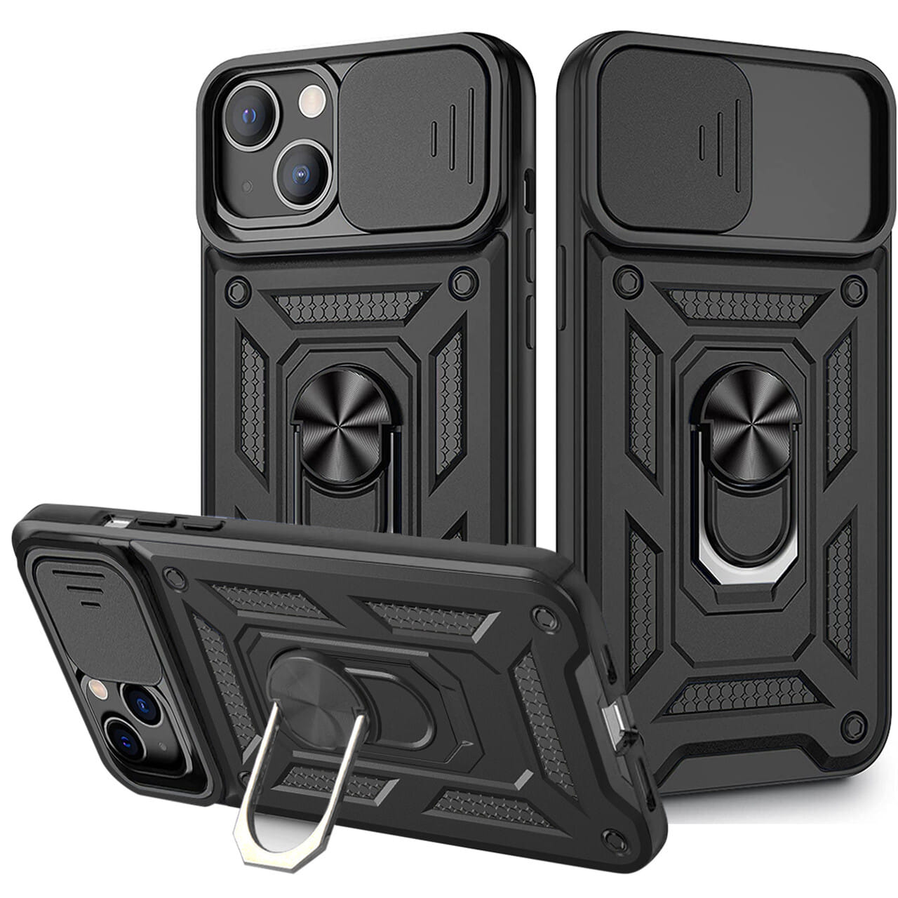 Kickstand Ring Holder With Slide Camera Cover Tpu Magnetic Car Mount For Apple Iphone 13 In Black