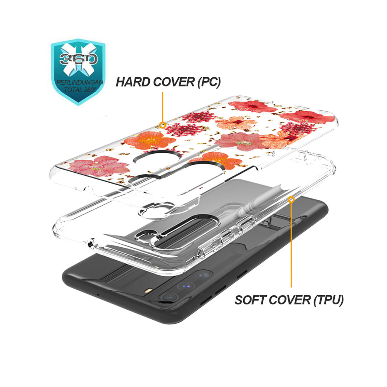 - – Cute Flower case: This case is made of soft silicone and natural flowers and leaf embedded design. Pure manual design giving your phone a unique and special look.
