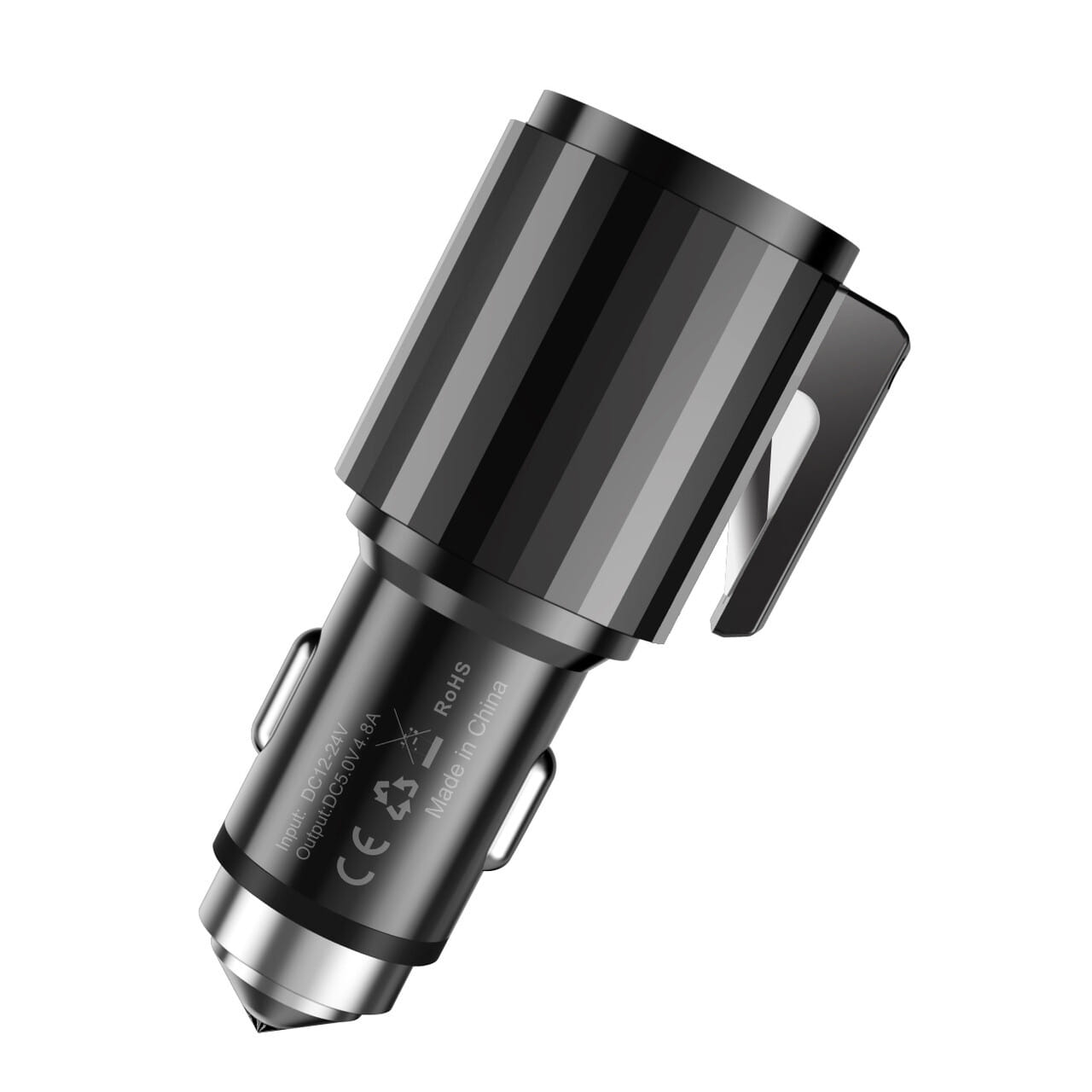 - – Life Guard: Not only a car charger, but also a safety window hammer for escaping from accident. The top material of the charger is steel, it will break the car window easily and allow a safe exit. Along with the stainless steel cutter, it will come in handy when help is needed to cut through the seat belt in an emergency.