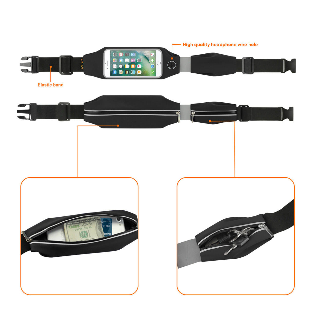 - – Reiko sport running belt waist packs with 2 pockets with touch screen window bag for universal 5.5 in devices