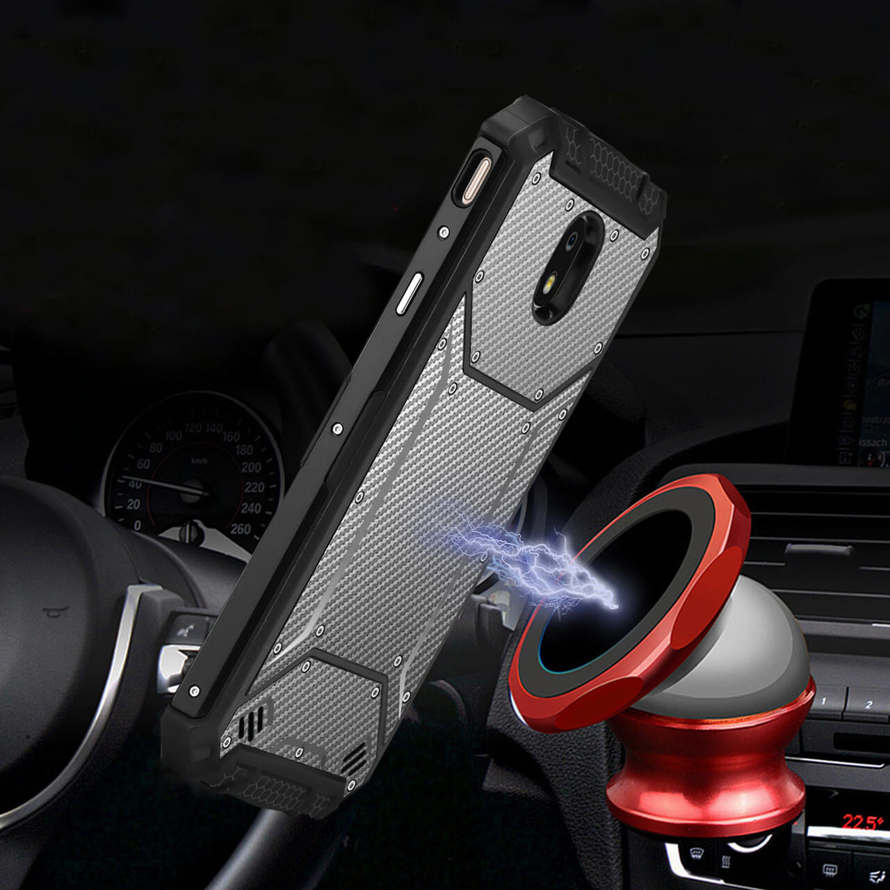 - – Exclusive invisible built-in magnetic metal plate designed phone protector. easy to connect and remove the phone from the magnetic car mount & holder by one hand when driving.