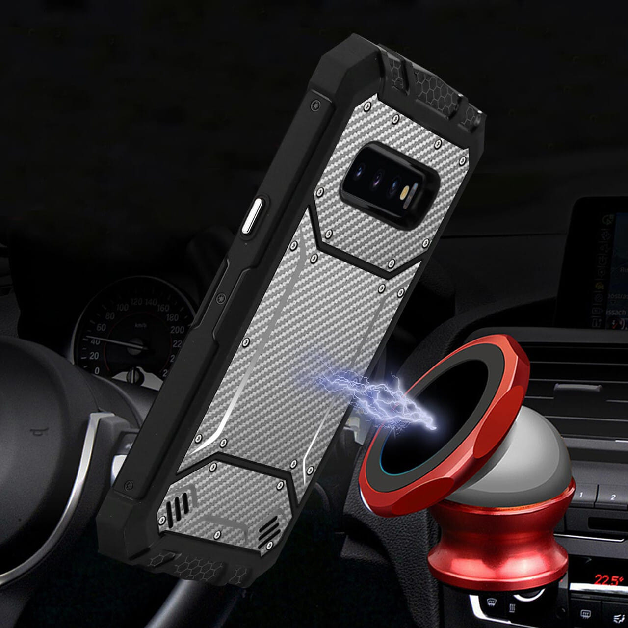 - – Exclusive invisible built-in magnetic metal plate designed phone protector. easy to connect and remove the phone from the magnetic car mount & holder by one hand when driving.