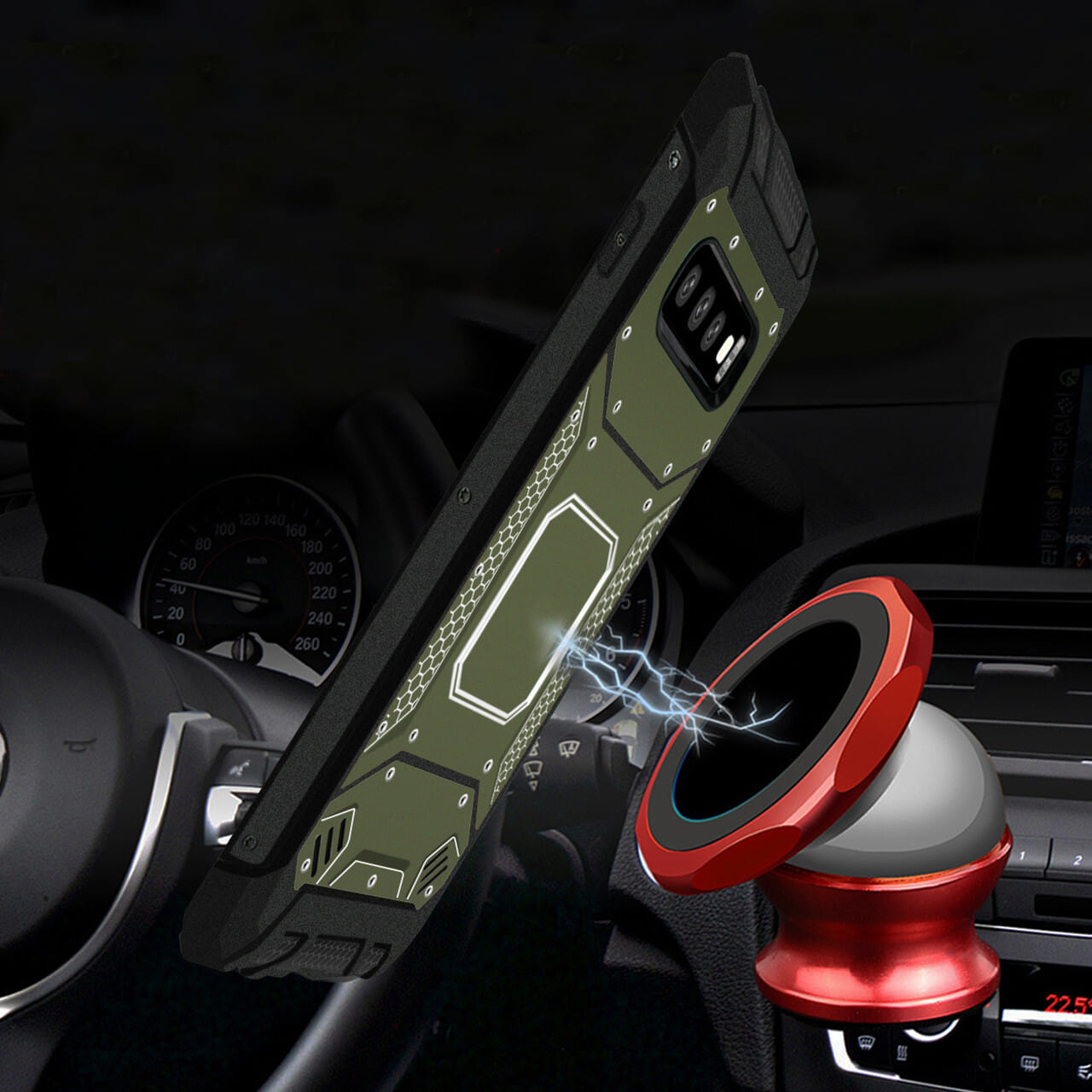 - – Exclusive invisible built-in magnetic metal plate designed phone protector. easy to connect and remove the phone from the magnetic car mount & holder by one hand when driving.